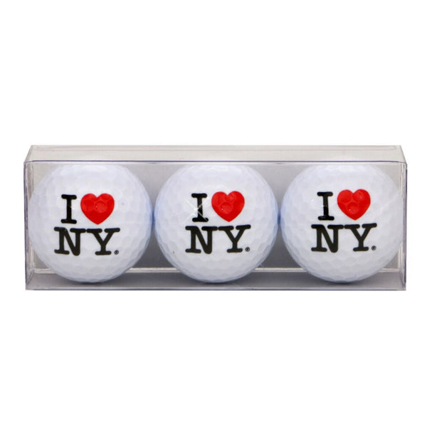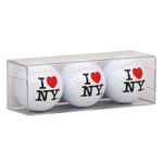 Take New York on the golf course with this pack of 3 golf balls. Presented in a clear Lucite box. Featuring the famous I LOVE NY logo. Makes a fun father's day gift or add to a New York gift basket for any golfer.
