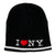 Black beanie with embroidered I LOVE NY logo.