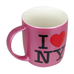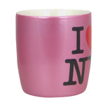 Indulge in the vibrant Metallic Pink I LOVE NY Mug, an exquisite 10oz bone China NYC mug that is both microwave and dishwasher safe. Enjoy your favorite beverages in style and without worry.