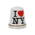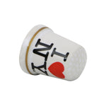 Collector's I LOVE NY thimble in white with gold ring. Made of ceramic and measures 1.1 inches tall.